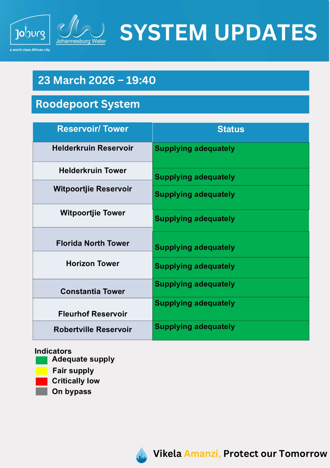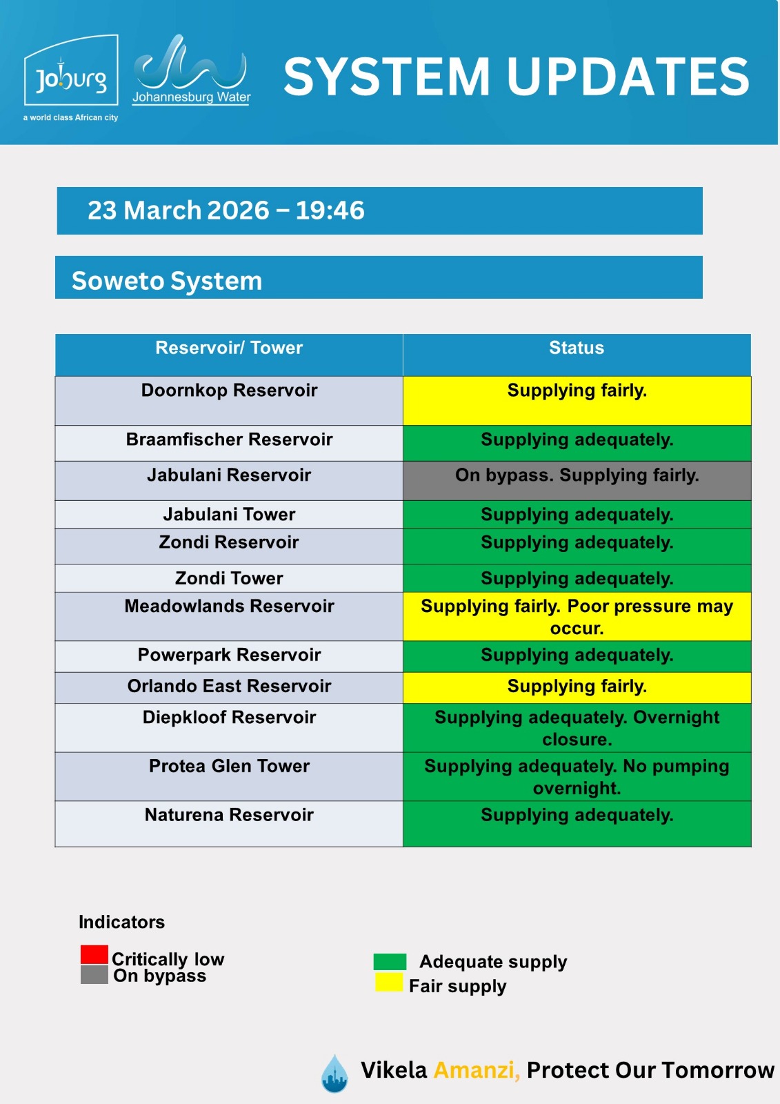 Please use the fault@jwater.co.za for logging water related incidents only