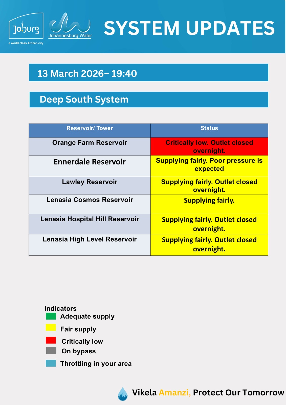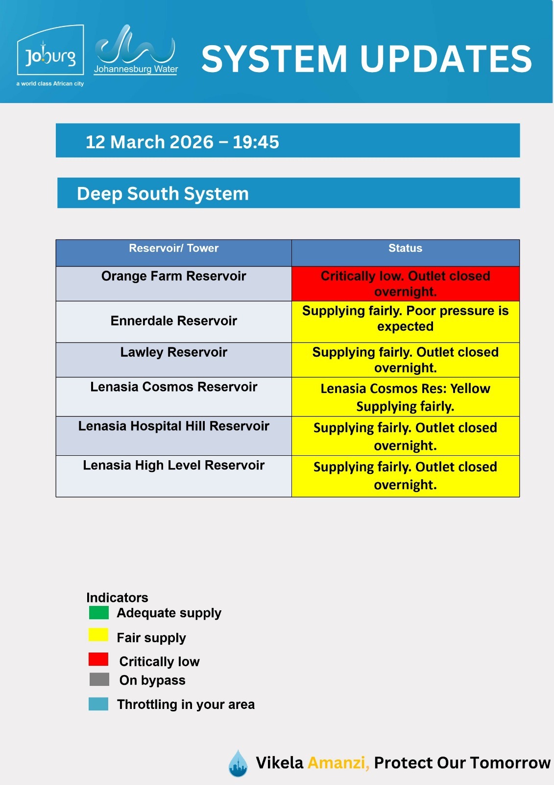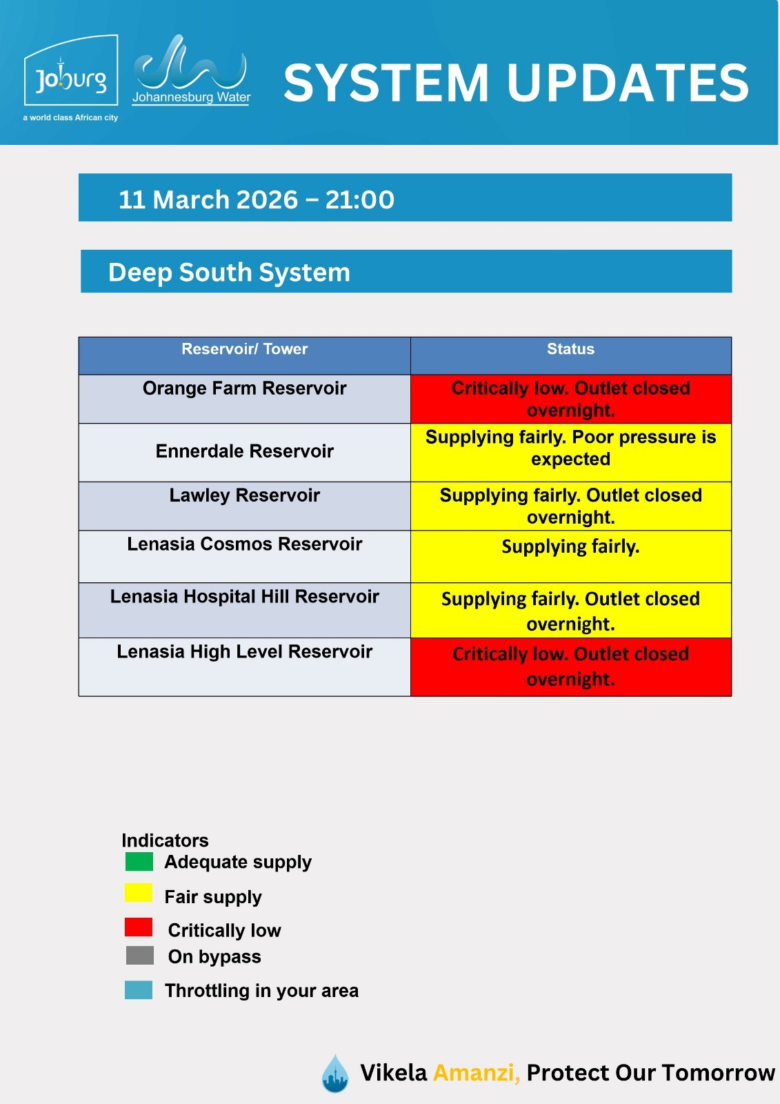 The Deep South is an area with a high volume of informal settlements and illegal water connections, which has put a strain on the Deep South systems due to the demand exceeding available supply/capacity.