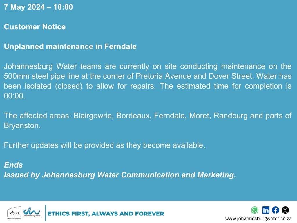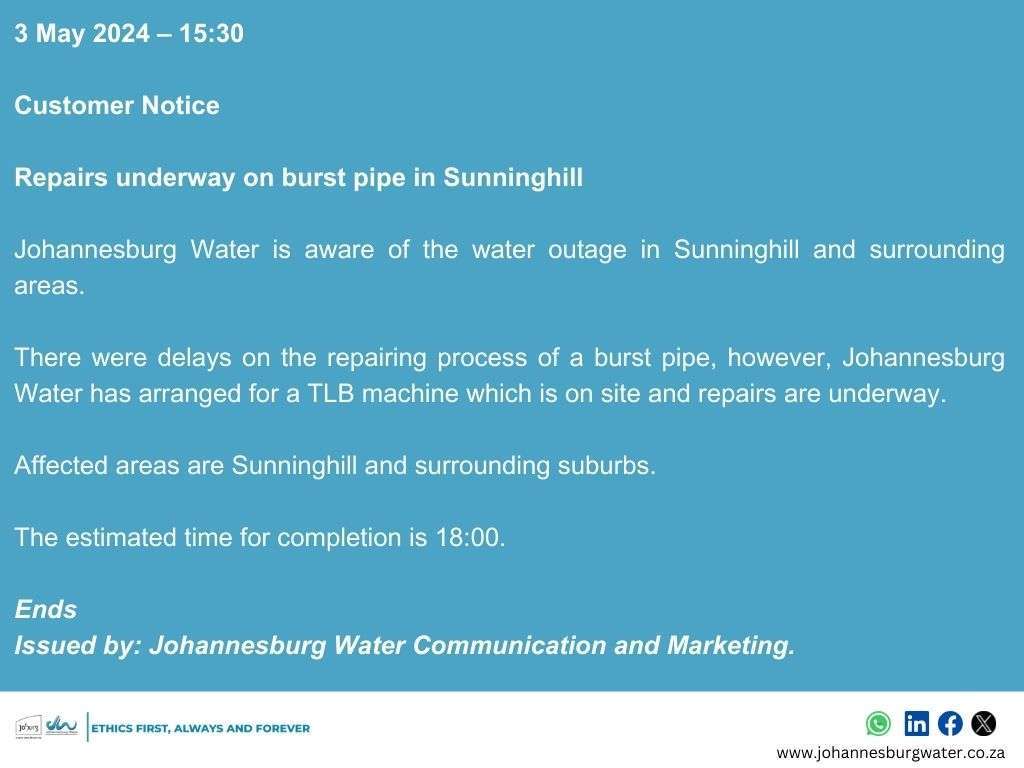 Issued by: Johannesburg Water Communication and Marketing.